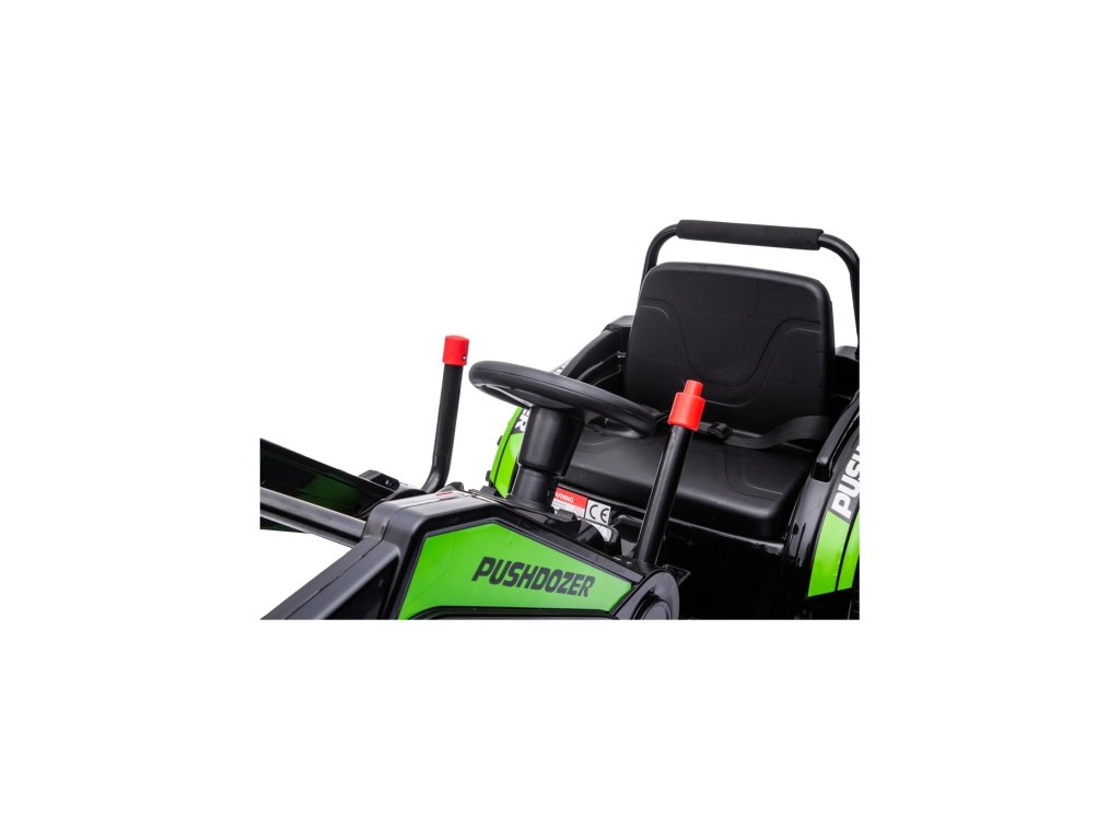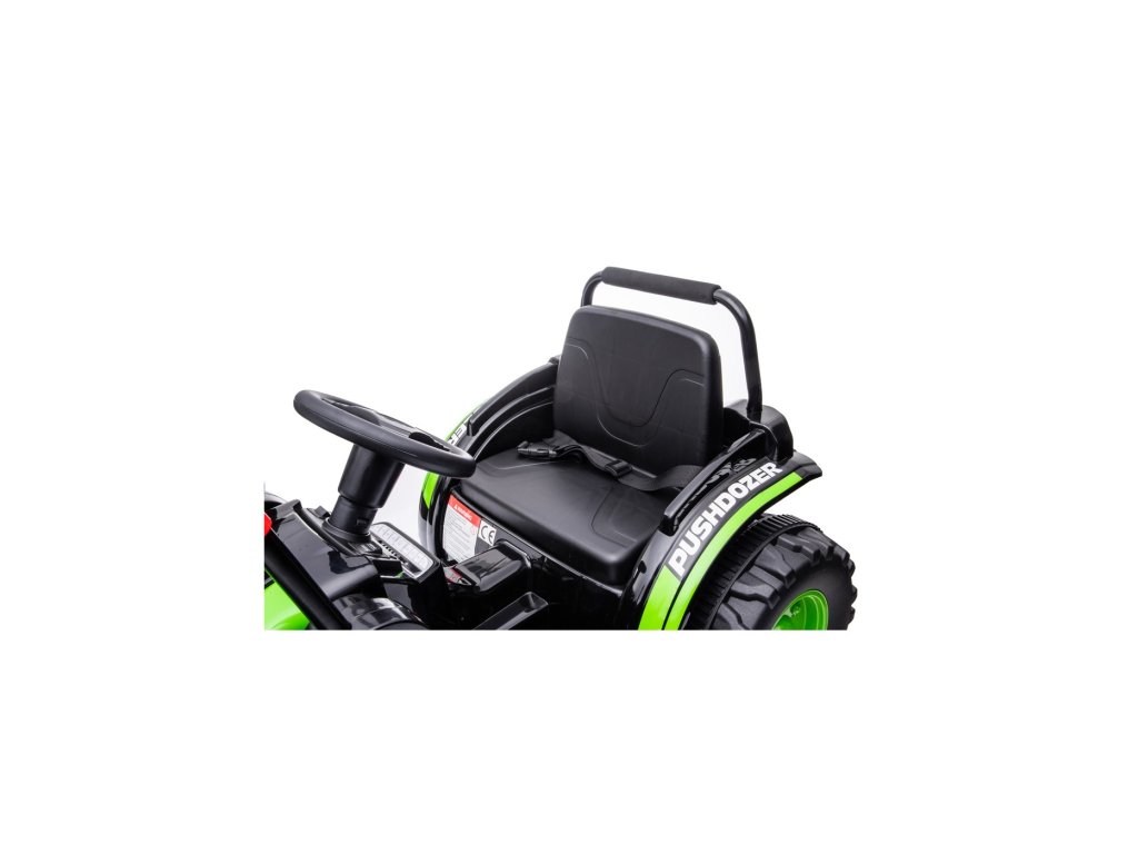 A gyerekeknek szánt elektromos traktor két 35W teljesítményű motorral és egy 12V 7Ah kapacitású akkumulátorral rendelkezik. A gyermek kényelmesen kialakított ülésben ül. A hang- és fényhatások minden bizonnyal élvezetesebbé teszik az utazást. A traktor zenepanellel van felszerelve MP3, FM rádió, USB, Bluetooth és előre lejátszott dallamokkal . A traktoron van egy kanál, ami le- és emeli, a kar pedig fel/le síkban működik.