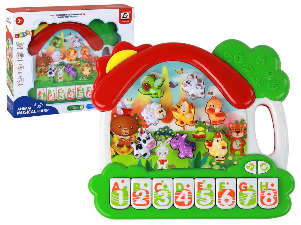 Az angol nyelvtanításra szánt zenés zongora egy innovatív oktatójáték állatmotívumokkal a réten. A kifejezetten fiatal angolul beszélő diákok számára tervezett zongora szórakoztató és interaktív tanulást tesz lehetővé hangok, betűk és állatok kombinálásával.