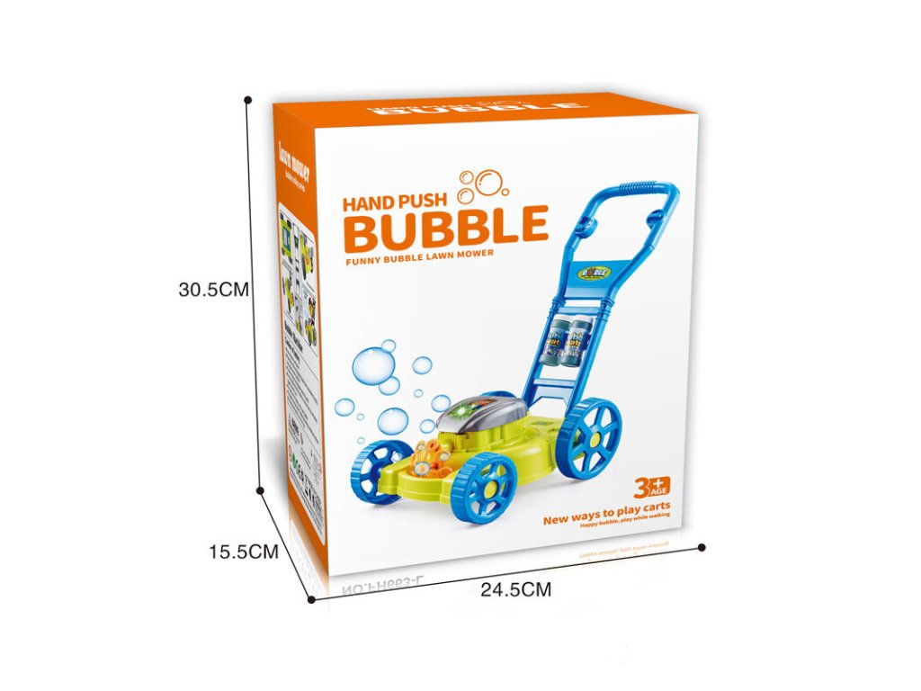 A fűnyíró formájú buborékfúvóval minden kinti pillanatot varázsoljon szórakoztató buborékshow-ba. Ez a könnyű és könnyen használható modell kényelmes fogantyúval lehetővé teszi a gyerekeknek, hogy tucatnyi szivárványbuborékot hozzanak létre. A fűnyíró akár 8 lyukat kínál a buborékok, az indítási hangok , a vágás és a vidám zene számára, hogy még élénkebbé tegye a játékot. A csomag két patront tartalmaz, így a szórakozás akár órákig is eltarthat.