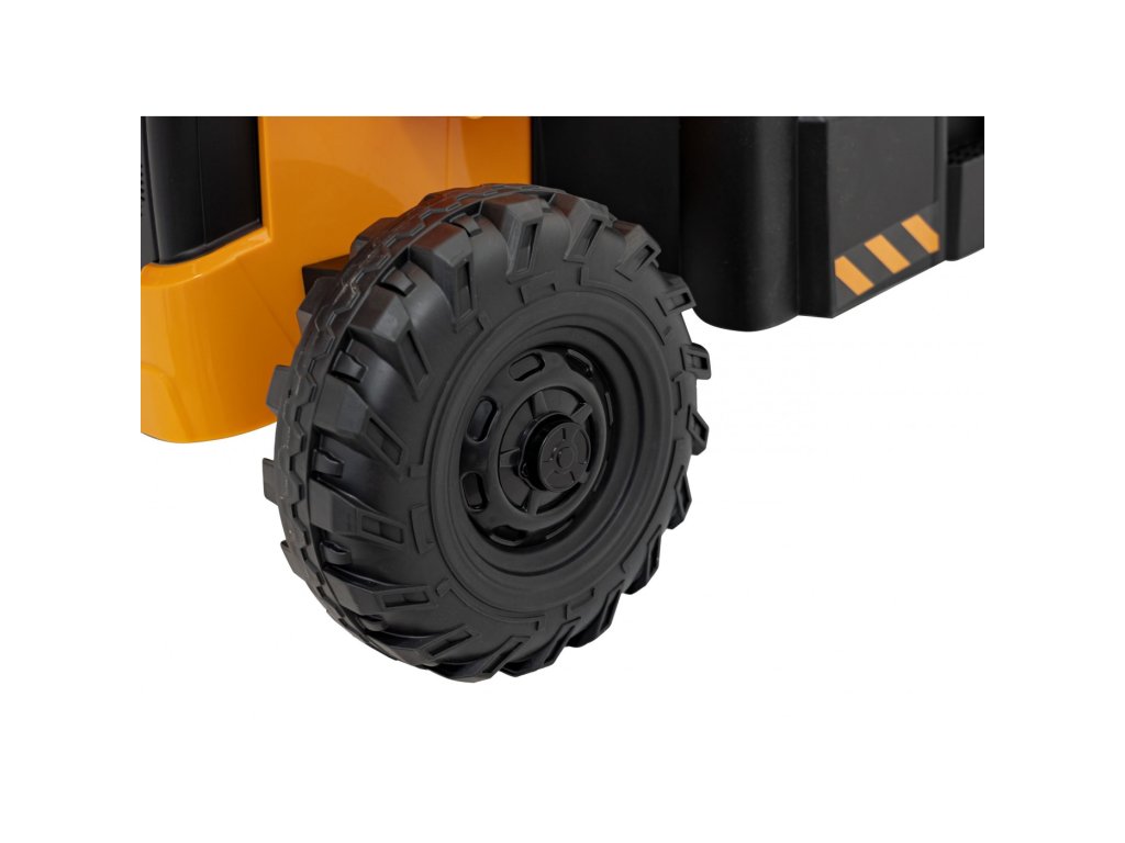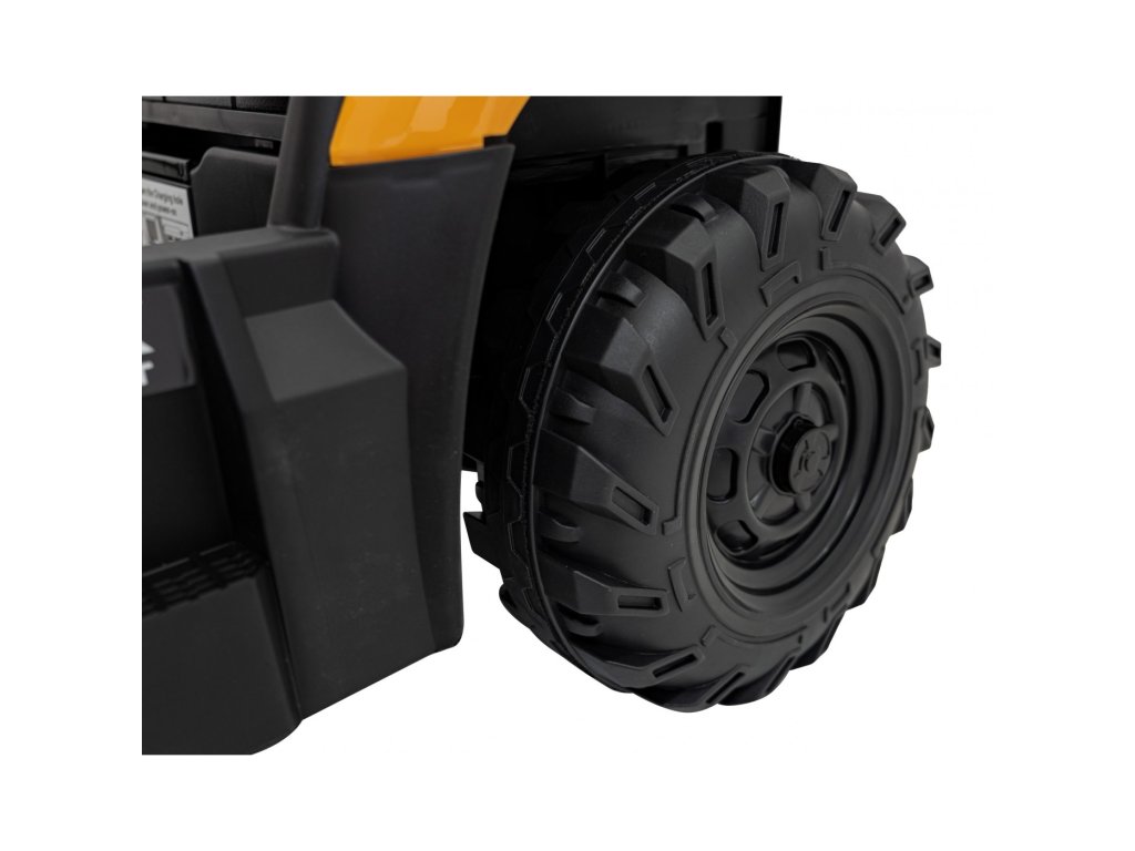 A gyerekvillamos traktor két 35W teljesítményű motorral és egy 12V 10Ah kapacitású akkumulátorral rendelkezik. A gyermek kényelmesen kialakított ülésben ül. A traktor leengedhető-emelhető kanállal rendelkezik, a kar fel/le síkban dolgozik.
