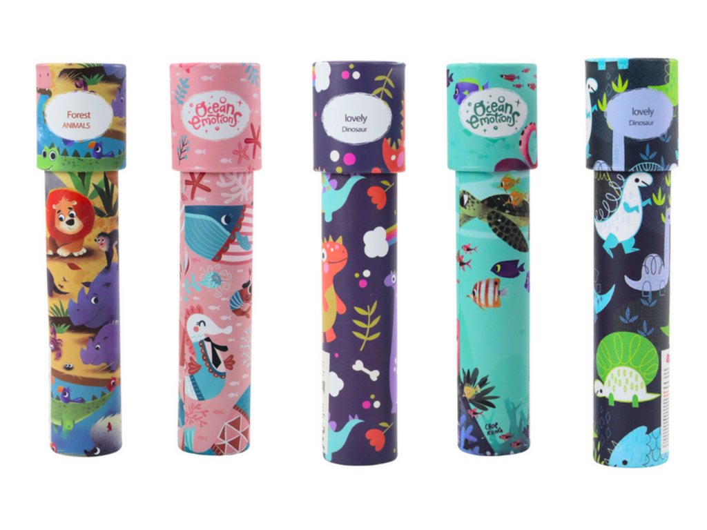 A kaleidoszkóp fedőlapján található állatmotívum növeli a varázsát, és még vonzóbbá teszi a gyerekek számára.