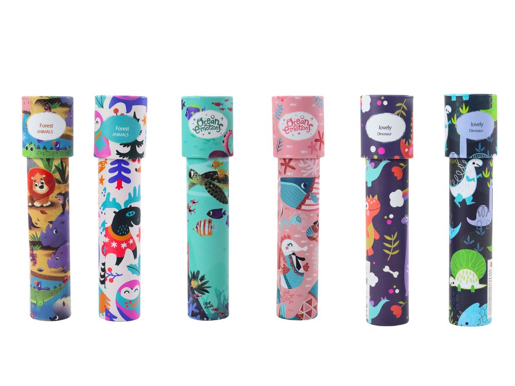 A kaleidoszkóp minden egyes fordulata azt eredményezi, hogy a gyermek változó, sokszínű szimmetrikus formákat és színes színeket lát. Ezek a dinamikus minták szemet gyönyörködtetőek és elbűvölőek, miközben serkentik a fiatal felfedező fantáziáját. A gyermek órákat tölthet a kaleidoszkóp forgatásával, és figyelheti, ahogy világa megváltozik, és színek és formák végtelen kombinációivá fejlődik.