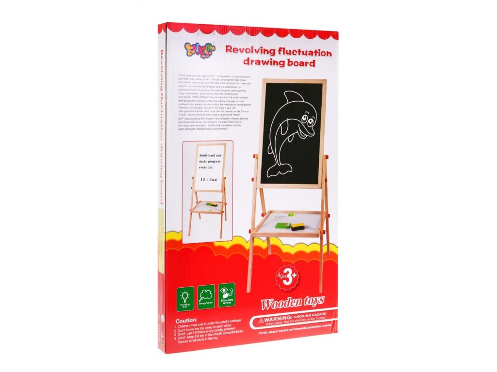 A gyerekeknek szánt tábla kétoldalas, egyik oldalán mágneses felületű, melyre jelölővel lehet írni. A másik oldal a krétával való íráshoz való. A készlet tartalmaz egy mágneses jelölőt, amit a táblára helyezhetsz, valamint egy radírszivacsot. 5 db színes krétát tartalmaz.