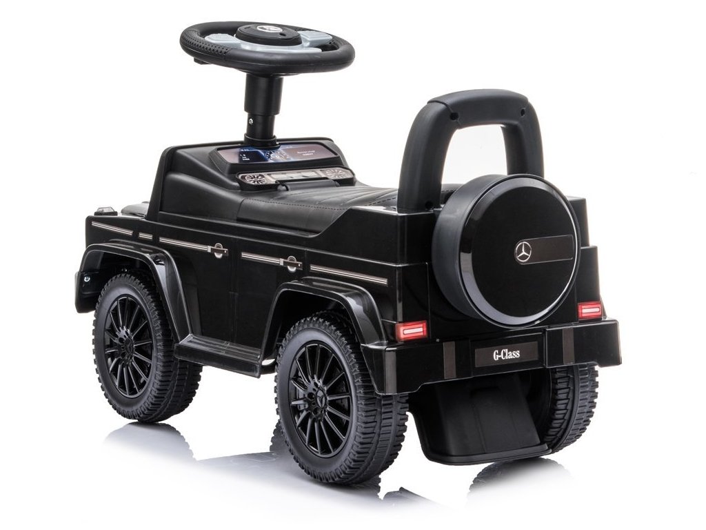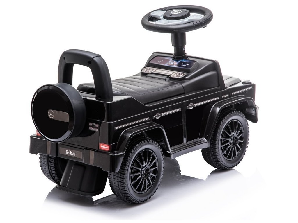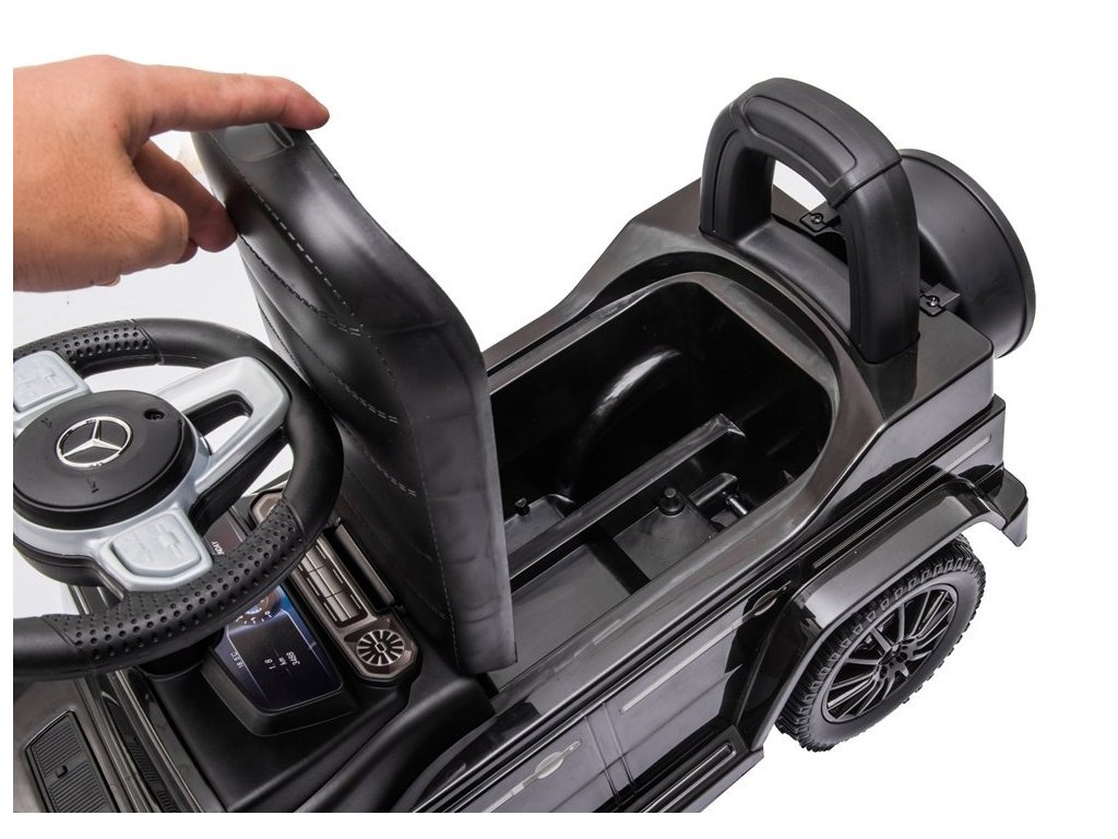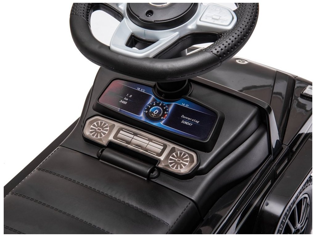 Az eredeti Mercedes-Benz licenccel rendelkező kidobógép bőrüléssel rendelkezik, amely kényelmes utazást biztosít a gyermekek számára. Az ülés alatt van egy kis csomagtér, ahol tárolhatod az apróbb tárgyakat. A kidobó kürtje van a kormányon, a babakocsi pedig járó motor hangját adja.