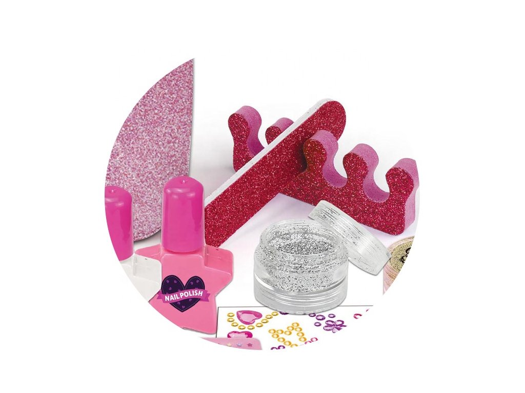Az elegáns rózsaszín tokban lévő gyermekkozmetikai szett ideális ajándék azoknak a kis hercegnőknek, akik szeretnének felnőttnek érezni magukat. Ez a készlet mindent tartalmaz, amire szüksége van egy gyönyörű smink és körömdizájn elkészítéséhez. A tokban különböző típusú körömlakkok és köröm kiegészítők találhatók. Minden biztonságos a gyermekek számára és könnyen tisztítható.