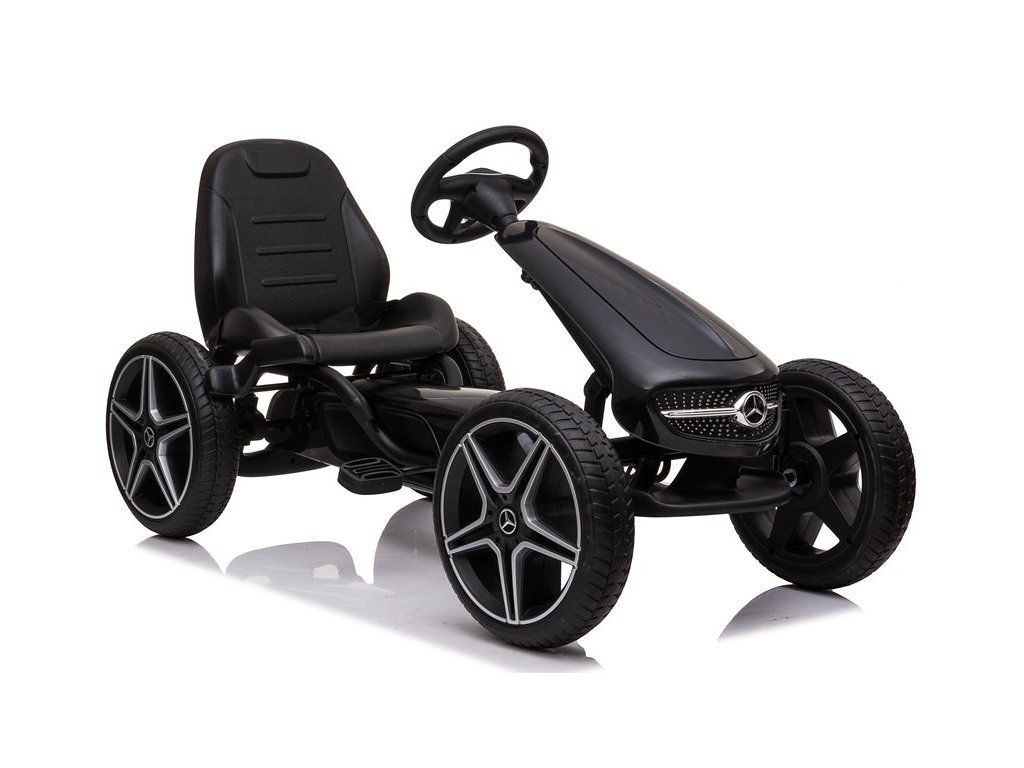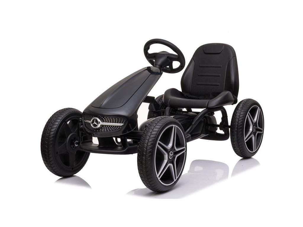 Gyermek pedálos Mercedes gokart nagyon jó minőségű gyermek pedálos autó modern designnal. A precízen kidolgozott fém szerkezet a minőségi műanyaggal kombinálva garantálja, hogy a gokart nem egy szezonra szól. A gyermek biztonsága érdekében funkcionális kézifékkel van ellátva, és a magas, ergonomikusan kialakított üléstámla is vigyáz az egészségre. Az ülés a gyermek kényelmének megfelelően állítható. A pedálos autó lehetővé teszi a gyermek számára az előre- és hátramenetet. A gokart kerekei lágyított gumis műanyagból készültek, ez biztosítja a tökéletes tapadást a felülethez. A gyermek pedálos gokart kiváló mozgásforma a gyermekek számára. Az emberi meghajtásnak köszönhetően környezetbarát és zajtalan.