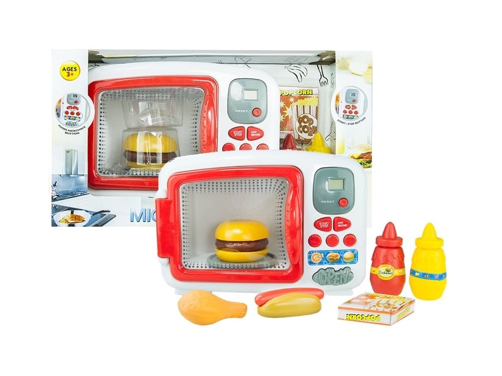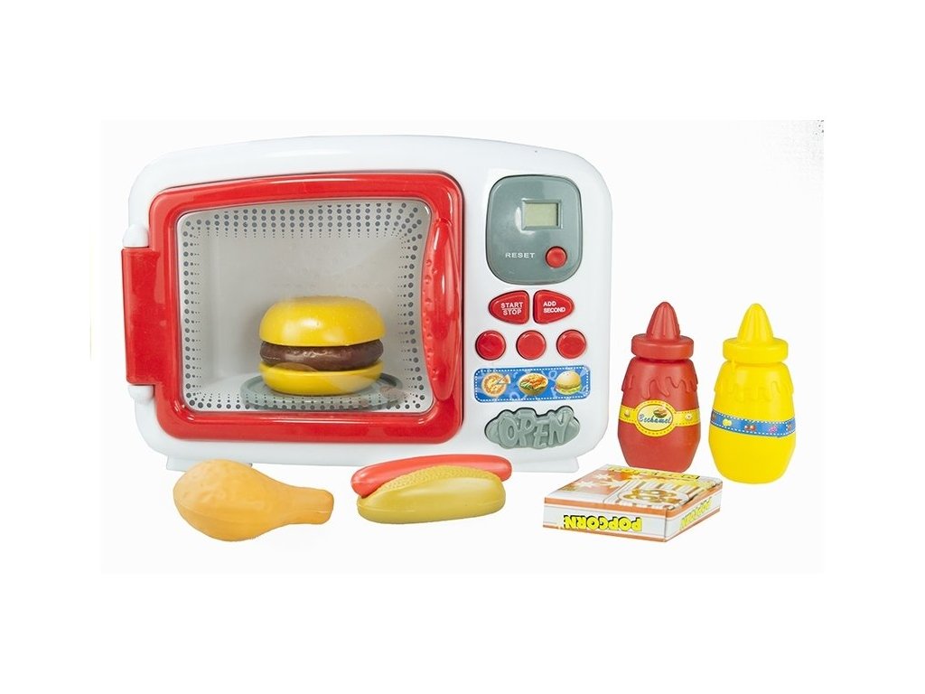 Valósághűen elkészített mikrohullámú sütő olyan funkciókkal, amelyek révén a gyermek úgy érzi, mintha egy igazi konyhában lenne. A mikrohullámú sütő 3 fűtési móddal rendelkezik, a gyerek kiválasztja a hamburger, pizza vagy spagetti gombot és elindítja. A készülék belsejében lévő lámpa lehetővé teszi, hogy a gyermek a forgó tányéron kövesse a melegítési folyamatot, ennek befejezését pedig jellegzetes hangjelzés jelzi.