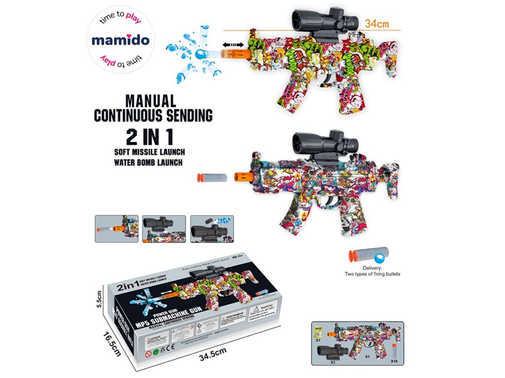 Gyermek puska 2 az 1-ben puha lőszerekkel és vízi gél golyókkal MP5