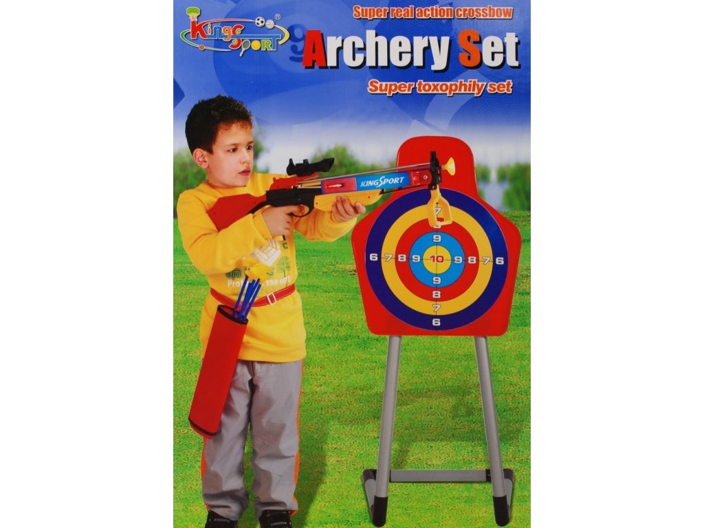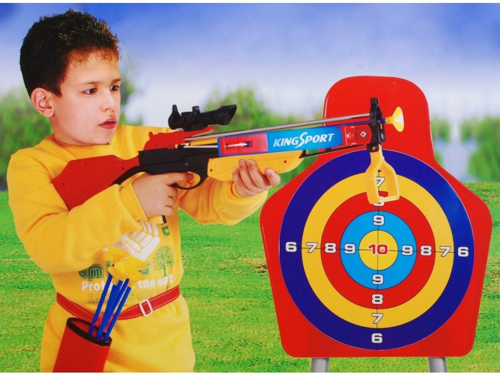 Bemutatunk Önnek egy teljes készletet - számszeríj, íj, nyíltok és nyilak. A céltábla állványra kerül, nem kell sehova felakasztani. A játékban legalább 2 fő vehet részt. Biztonsági okokból nem javasoljuk, hogy olyan területen fuss, ahol valószínű, hogy egy nyíl eltalál. Az íjászat egy nagyon vonzó formája az aktív szabadidő eltöltésének a kimerítő tanulás után. A céltáblán több körből álló mező található számokkal, így lehet íjászversenyt rendezni a pontokért. Az íj lézeres irányzékkal van felszerelve! A húr gumiból készült. Ez a készlet tökéletes ajándék fiatal lövészeknek.