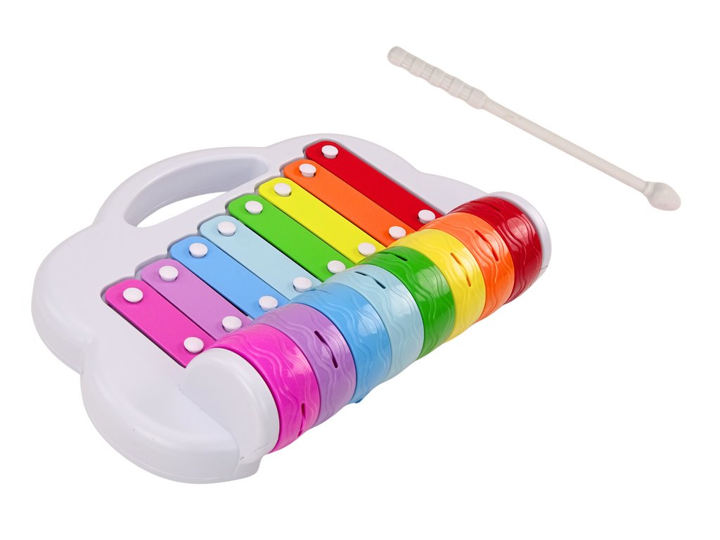 A cimbalom egy játék, amely bevezeti a gyerekeket a hangok és dallamok világába. 8 színes gombbal rendelkezik, amelyek mindegyike más-más hangot ad ki. Egy másik látványosság a kerekek, amelyek 360 fokban forognak, és az egyes billentyűknek megfelelő hangokat is kibocsátanak. A csomag tartalmaz egy kalapácsot, amellyel a gyerekek kényelmesen és pontosan játszhatnak a cimbalommal.