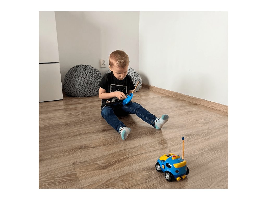 Egy egyszerű kormánykerék alakú távirányító kisgyermekek számára, hogy gyorsan és egyszerűen megtanuljanak autót vezetni. Az autó motorháztetőjén három gomb különféle hangokat vált ki, és mindent villogó fényszórók kísérnek. A játék rendőrautó tud előre, hátra és kanyarodni, menet közben égnek az első lámpák. Az utazás dinamikus; a gumikerekeknek köszönhetően az autó csendesen halad és remek tapadást biztosít a padlón.