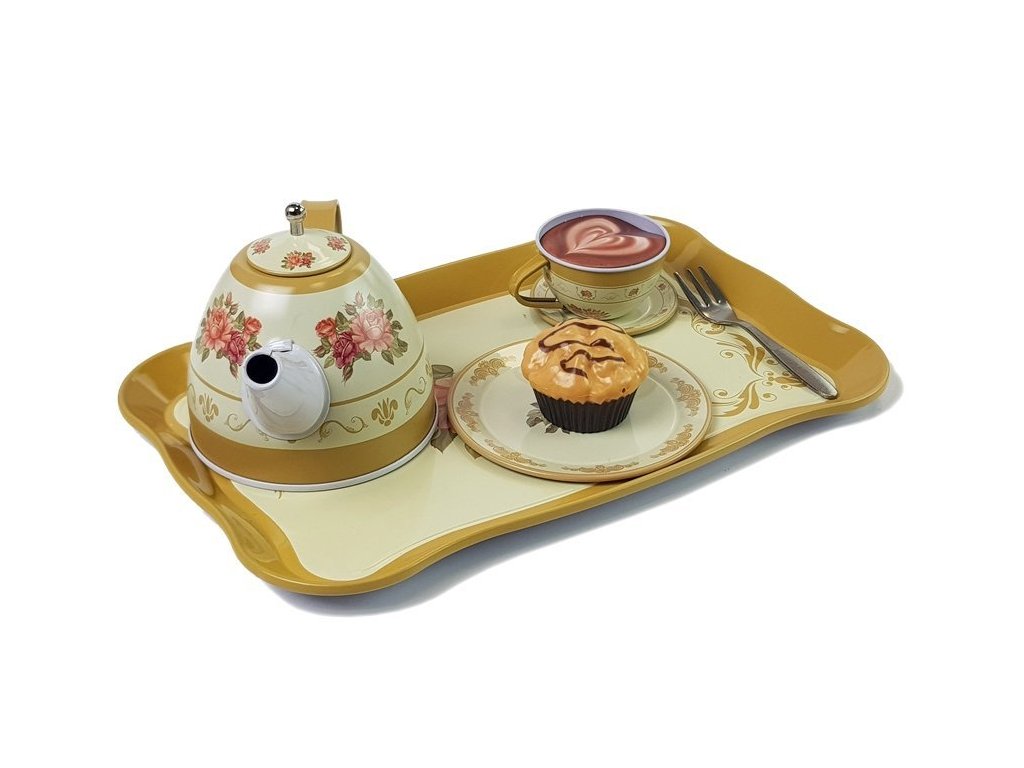 Teáskészlet minden gyermek számára, aki szereti utánozni a felnőttek szerepét. Egy aranyos teáskészlet minden lánynak jól áll egy teadélután, látogatás vagy mackós vagy babás piknik alkalmával. A képzeletnek nincs határa. A teáskészlet gyönyörű fehér és krém színekben készült, rózsa motívummal.