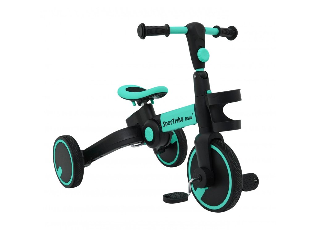 A gyermek tricikli támogatja a kisgyermekek fizikai aktivitását. A karcsú váz, a kényelmes, két magasságban állítható puha ülés, valamint a kormányon lévő gumi markolat gondoskodik a kényelmes utazásról. A pedálok és a tolórúd könnyen eltávolíthatók. A tricikli italtartóval és gumi kerekekkel van felszerelve.