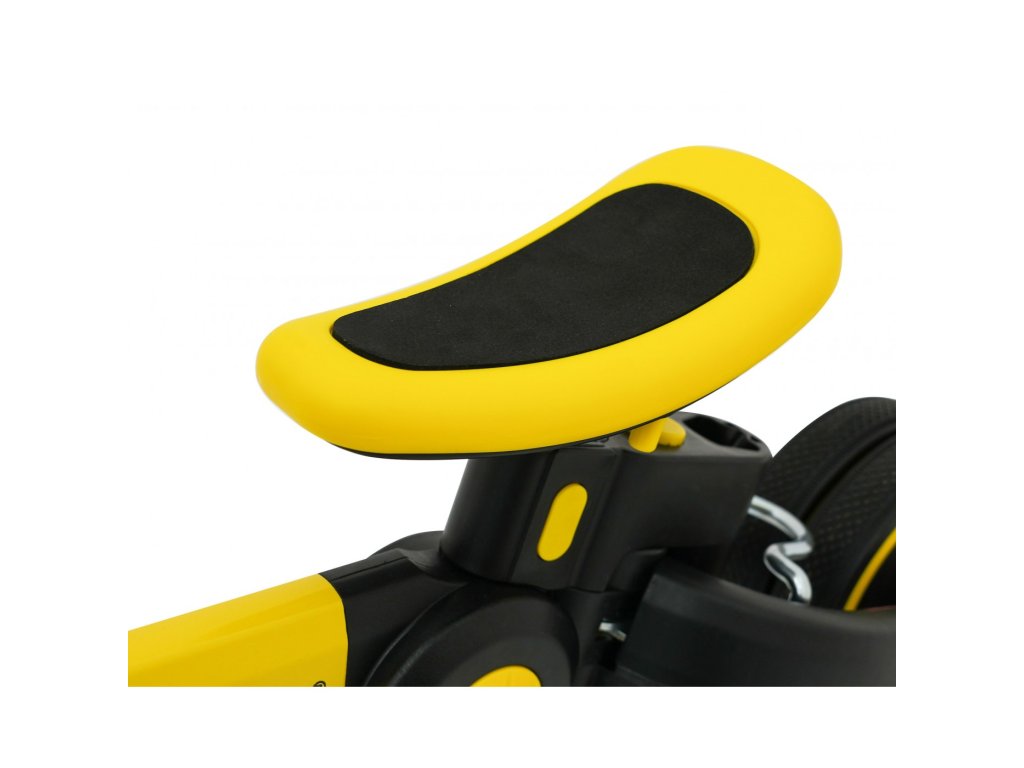 A gyermek tricikli támogatja a kisgyermekek fizikai aktivitását. A karcsú váz, a kényelmes, két magasságban állítható puha ülés, valamint a kormányon lévő gumi markolat gondoskodik a kényelmes utazásról. A pedálok és a tolórúd könnyen eltávolíthatók. A tricikli italtartóval és gumi kerekekkel van felszerelve.