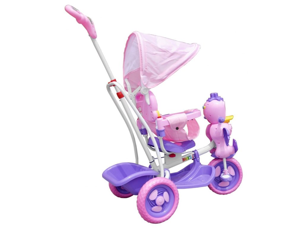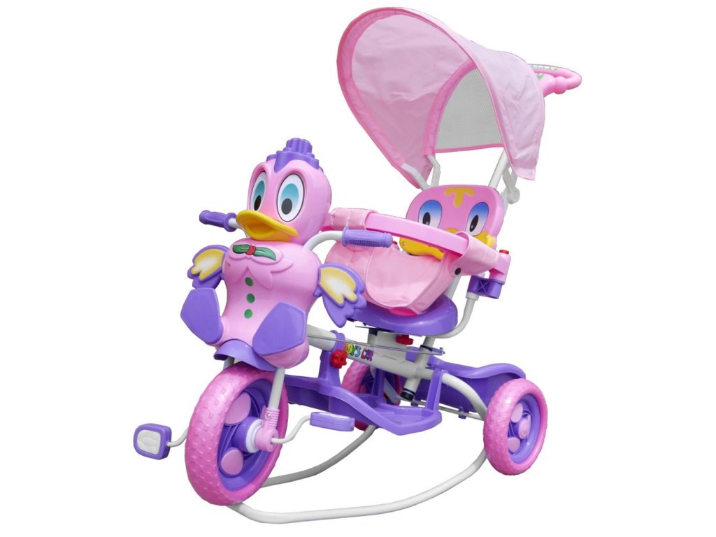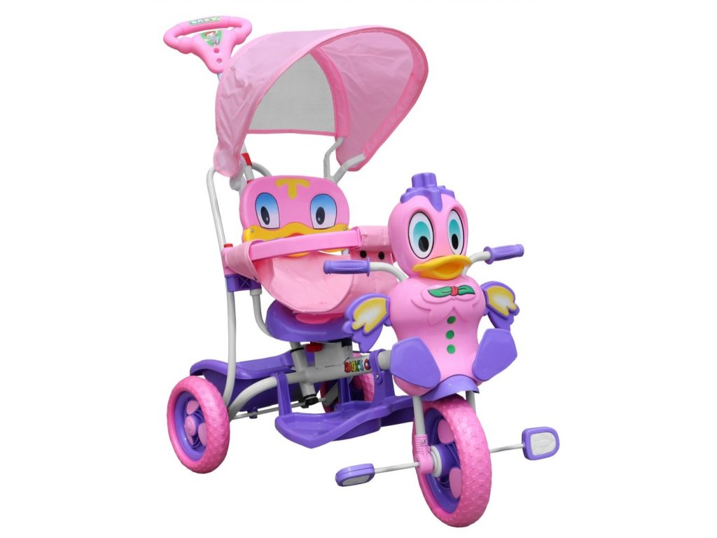 Gyermek tricikli kacsafejjel és hangeffektusokkal. Stabilitásának köszönhetően nem kell aggódnia a gyermek biztonsága miatt. A vezetőrúd jól vezérli a kisgyerekek utazását, hogy ne tévedjenek messzire Öntől, a rúd eltávolítható is. Megfelelő korosztály 1-5 éves korig. A termék európai CE biztonsági tanúsítvánnyal rendelkezik.