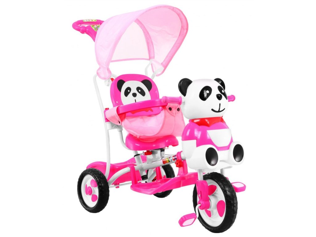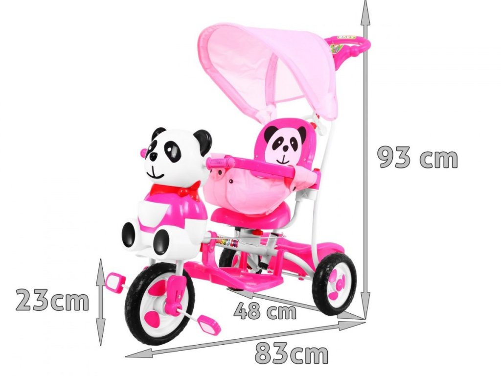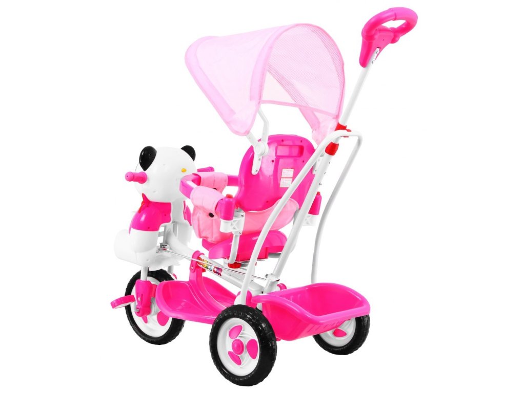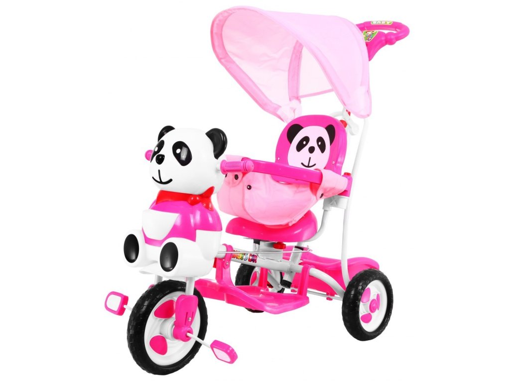 - gyermek tricikli vezetőrúddal, panda motívumban