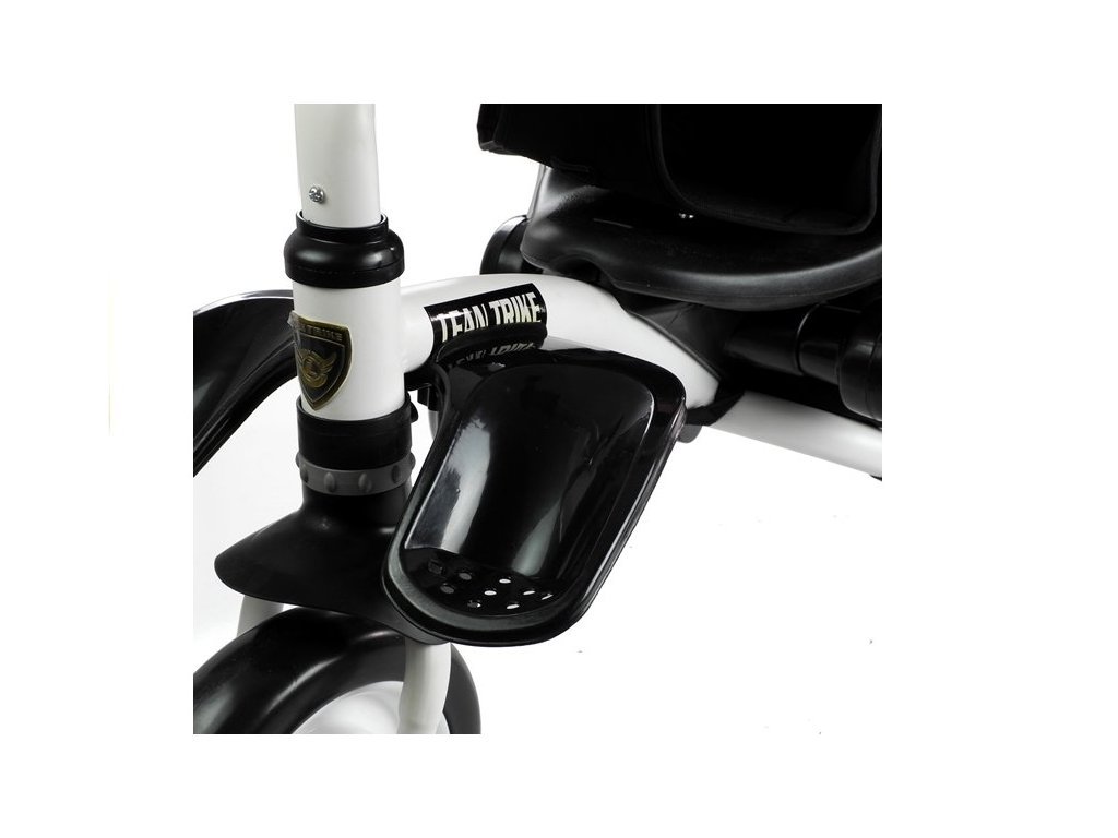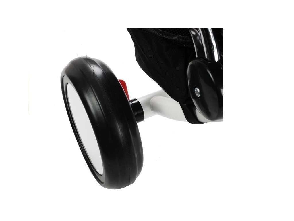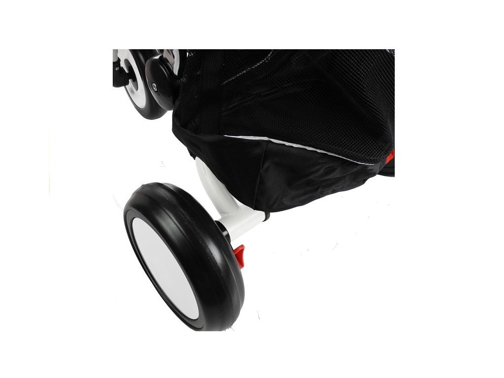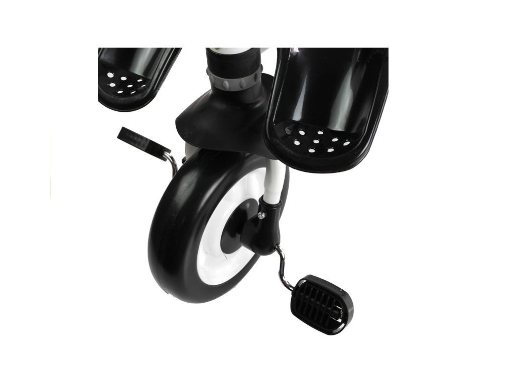 A gyermek tricikli egy tágas kosárral rendelkezik a játékok, a vásárlás vagy a gyermek igényei számára. A tricikli első kerék sárvédővel, magasságállító fogantyúval, vállpántokkal és a lábak között elhelyezett kiegészítő övvel is fel van szerelve. Ez a gyermeket kényelmes helyzetben rögzíti, és kiküszöböli annak kockázatát, hogy a gyermek leessen az ülésről.
