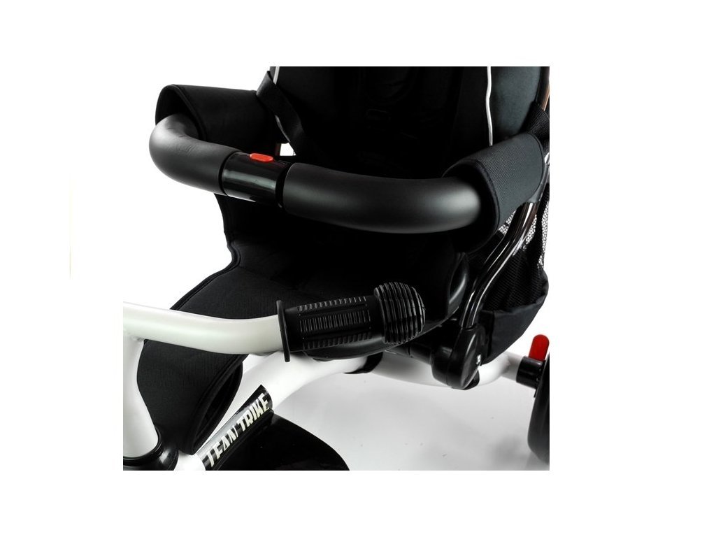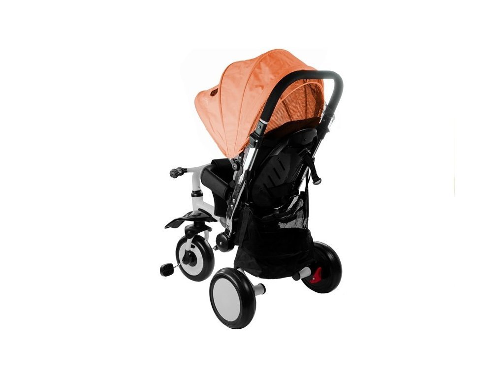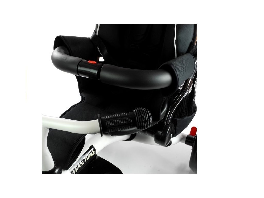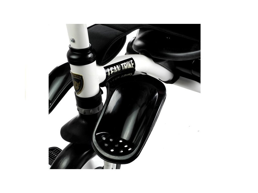 A gyermek tricikli egy tágas kosárral rendelkezik a játékok, a vásárlás vagy a gyermek igényei számára. A tricikli első kerék sárvédővel, magasságállító fogantyúval, vállpántokkal és a lábak között elhelyezett kiegészítő övvel is fel van szerelve. Ez a gyermeket kényelmes helyzetben rögzíti, és kiküszöböli annak kockázatát, hogy a gyermek leessen az ülésről.