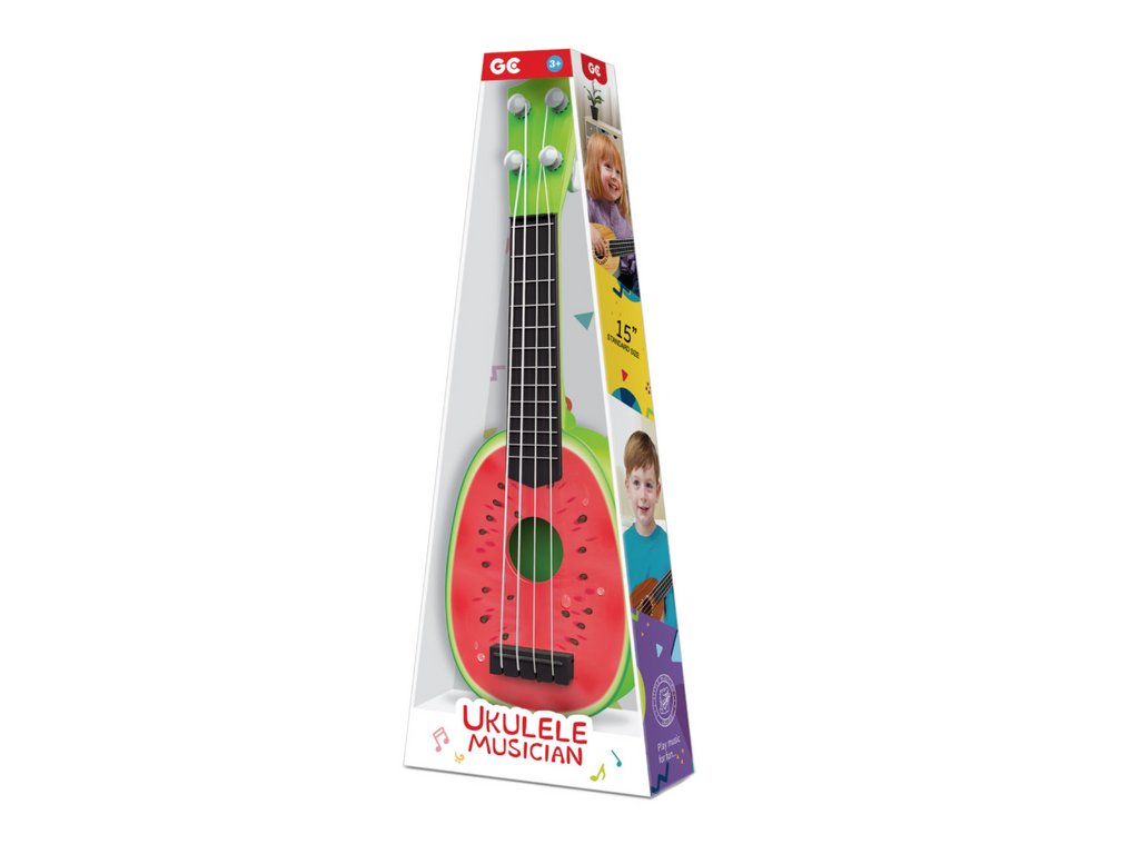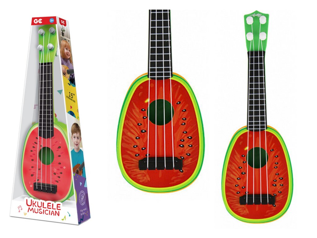 A gyermek ukulele nagyszerű választás fiatal zenészeknek, akik szeretnék felfedezni a zene világát. Ezt a könnyű hangszert négy nylon húrral úgy tervezték, hogy könnyen kezelhető legyen és kellemes legyen a kis kezek számára. Tartós és biztonságos műanyagból készült. A görögdinnye formájú, tetszetős dizájn játékos megjelenést kölcsönöz a hangszernek, amely izgatja a gyerekeket és további zenei fejlődésre ösztönzi őket.