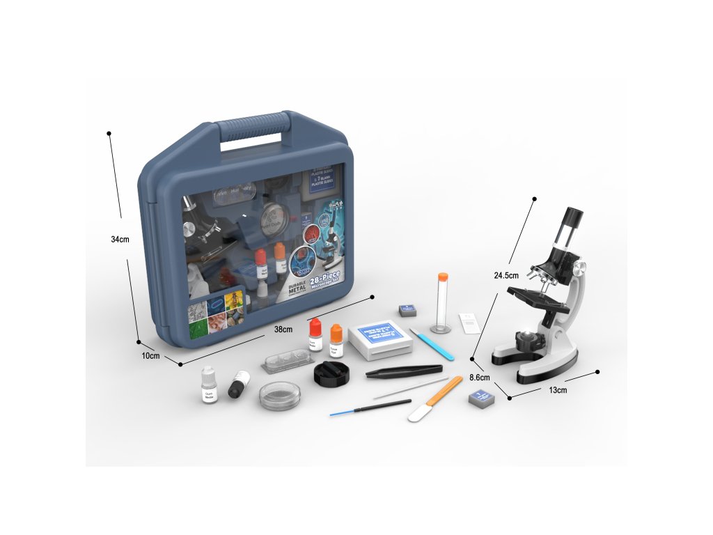 Ez a 28 darabos mikroszkópkészlet tökéletes azoknak a kis tudósoknak, akik szeretnék felfedezni és felfedezni a mikrovilágot. A mikroszkóp praktikus tokban található, ami megkönnyíti a szállítást és tárolást. A készlet tartalmaz egy kiváló minőségű, akár 1200x-os maximális nagyítású fémmikroszkópot, különféle mintákat és eszközöket a saját készítmények elkészítéséhez.