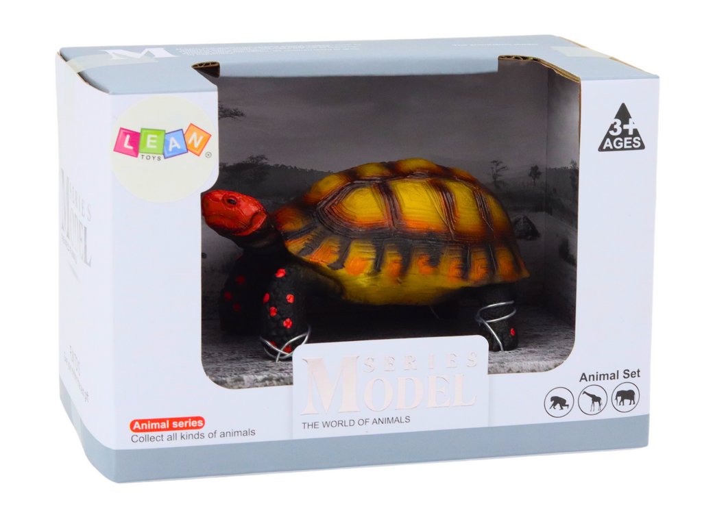 A figura színvilága olyan színeket tartalmaz, amelyek finoman átszőtt barna elemekkel a héjon és fekete-narancssárga elemekkel a bőrön, ami valósághűséget és természetességet ad. A teknős, amely a hüllők közé tartozik, valósághűen van ábrázolva, ami segíthet a gyerekeknek jobban megérteni ezen állatok megjelenését és tulajdonságait.