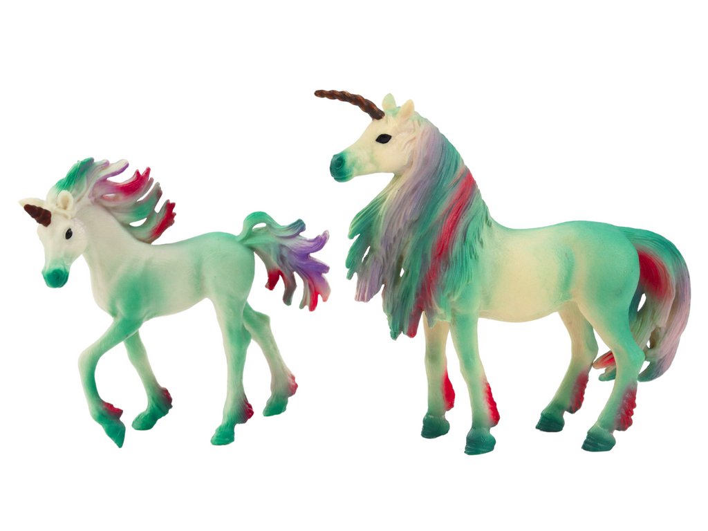 Az egyszarvú figurák, amelyek egy felnőtt egyszarvút és egy babát ábrázolnak, olyan egyedi készlet, amely biztosan elvarázsolja e mesebeli lények szerelmeseit. Mindkét egyszarvú zöld színű, ami varázslatos megjelenést kölcsönöz nekik. A valósághűen renderelt textúrák szinte élethűvé varázsolják a figurákat, tovább hangsúlyozva egyediségüket és aprólékos kidolgozásukat.