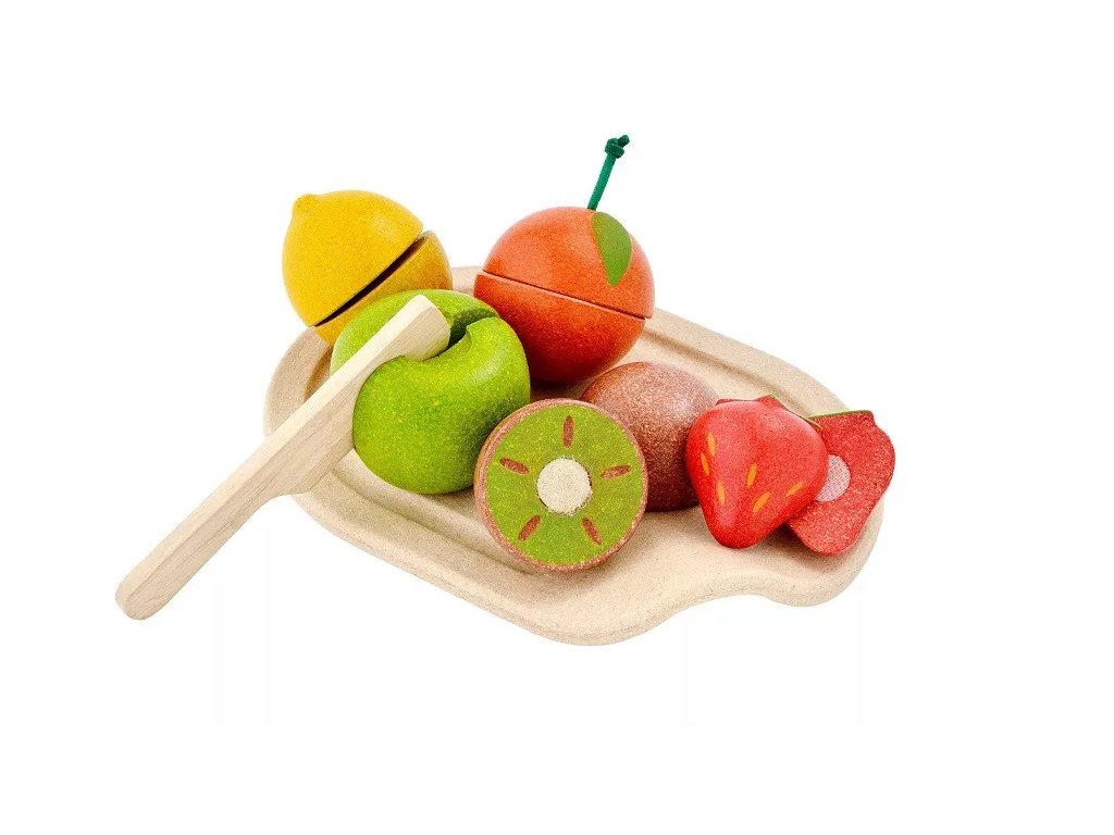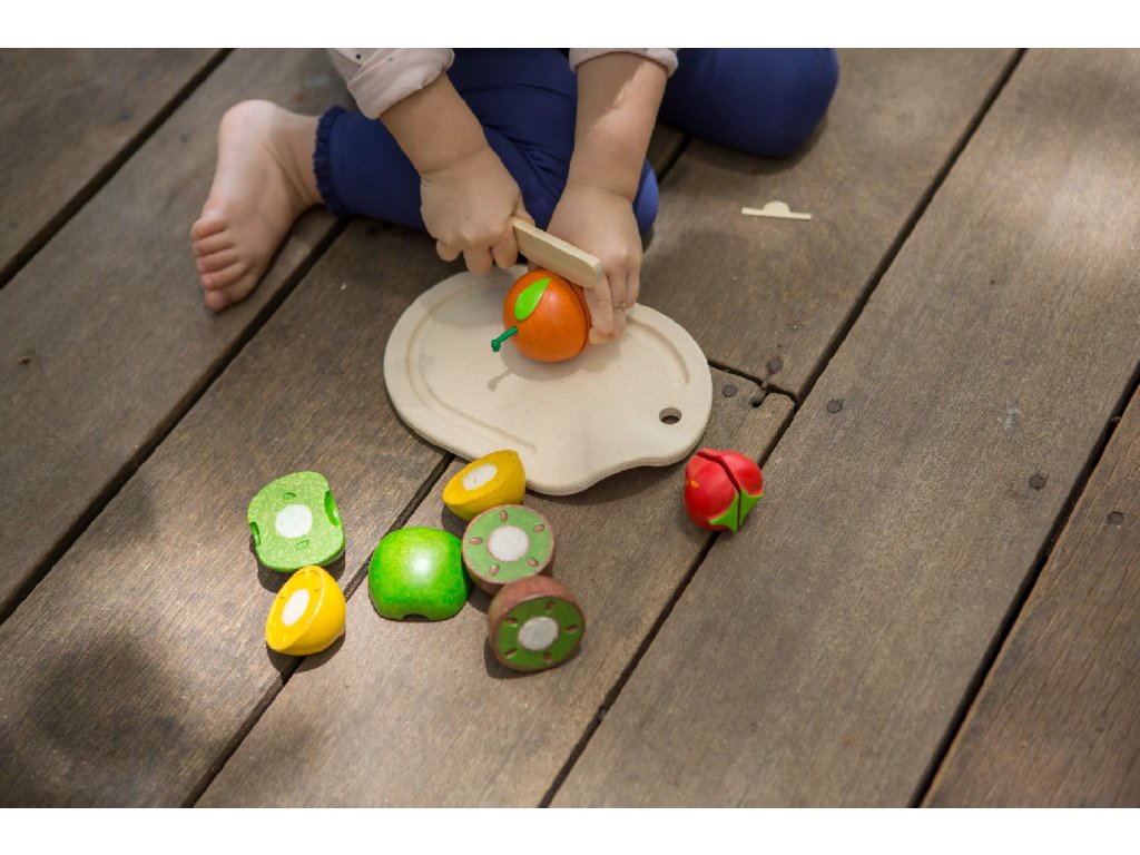 A PlanToys fából készült gyümölcs készlete kis szakácsoknak készült, amely támogatja a kreatív játékot és a finommotoros készségek fejlesztését.