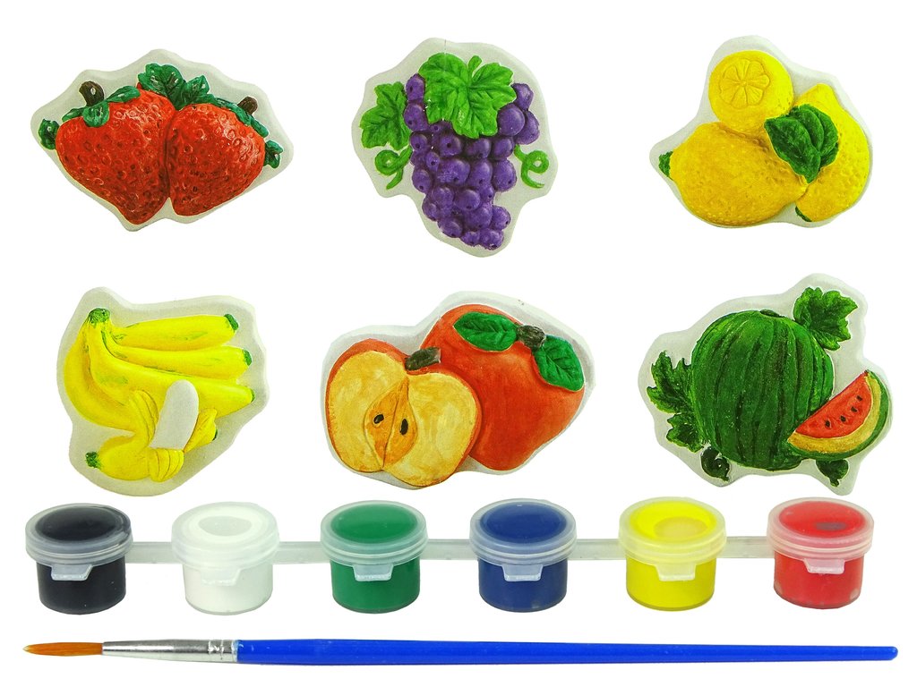 Hat különböző gyümölcsminta lehetővé teszi, hogy időt töltsön együtt játékokkal, csak vegyen ecsetet és festéket, és kezdjen festeni. A kisgyermek megtanulhatja felismerni a gyümölcsöket, például: eper, szőlő, citrom, banán. Talán ezzel kezdődik a kalandjuk a konyhában.