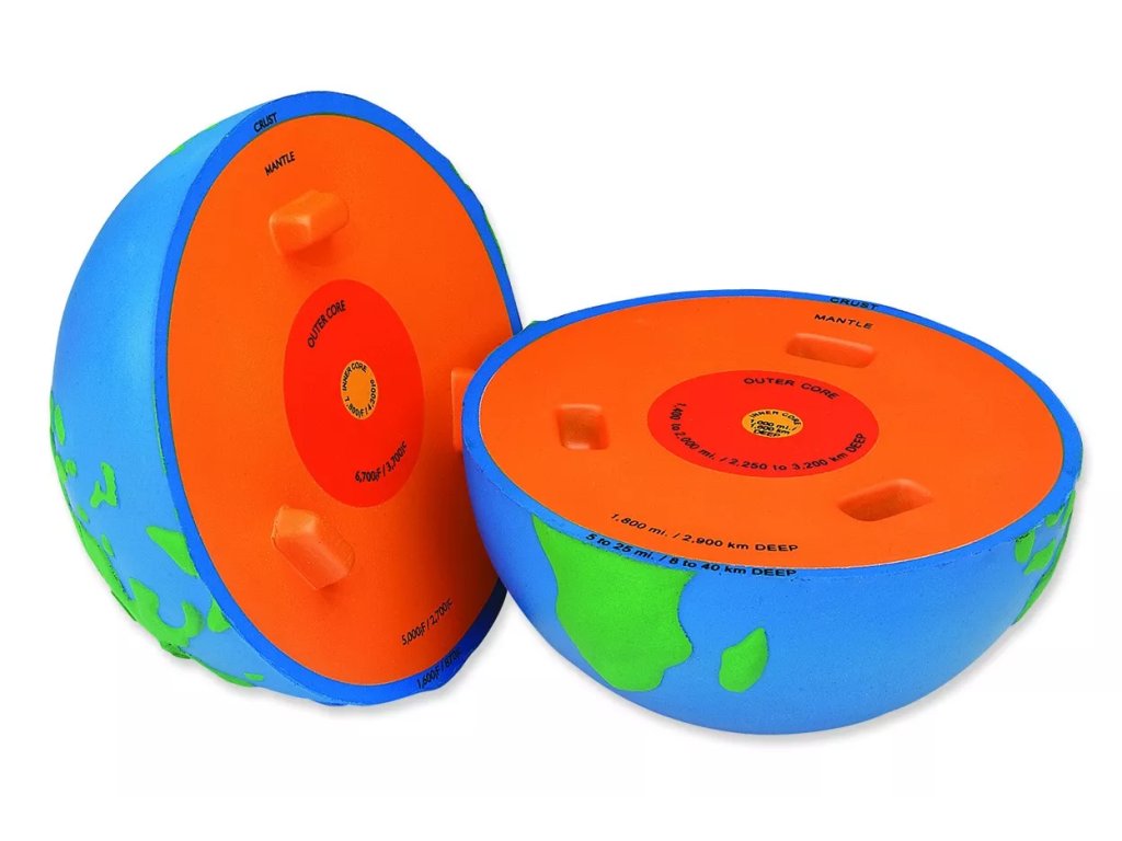 A modell lehetővé teszi a gyermek számára, hogy megismerkedjen a mag felé irányuló négy fő réteggel, és elképzelje a hőmérsékletük és vastagságuk közötti alapvető különbségeket.