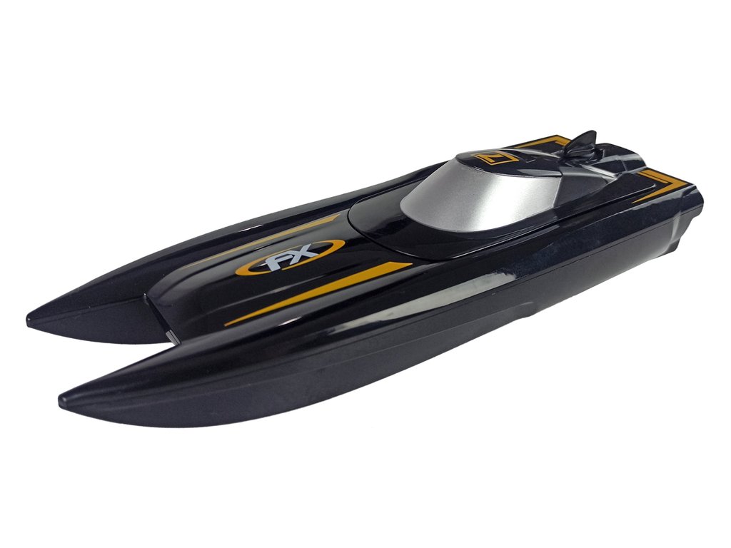 A motorcsónak speciális konstrukciója megakadályozza a víz bejutását. A két motornak köszönhetően mozgékony, gyors és megbízható. A távirányító kényelmes, tökéletesen illeszkedik a kézbe. 2,4 GHz-es frekvencián ad, ami két jármű vezérlésekor nem okoz interferenciát.