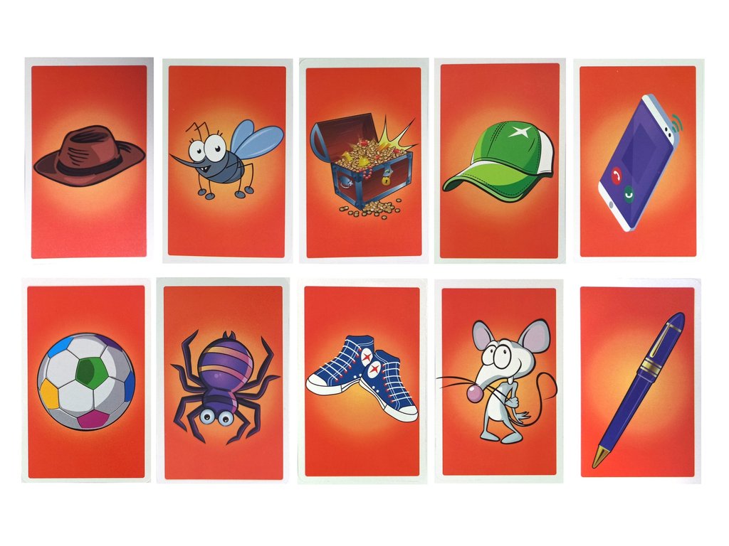 (toll, sapka, egér, cipő, labda, pók, kincsesláda, telefon, szúnyog, kalap)