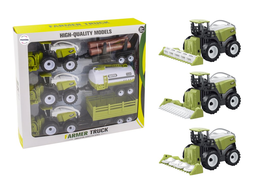 - A készlet tartalma: 3 arató-cséplőgép + 3 utánfutó