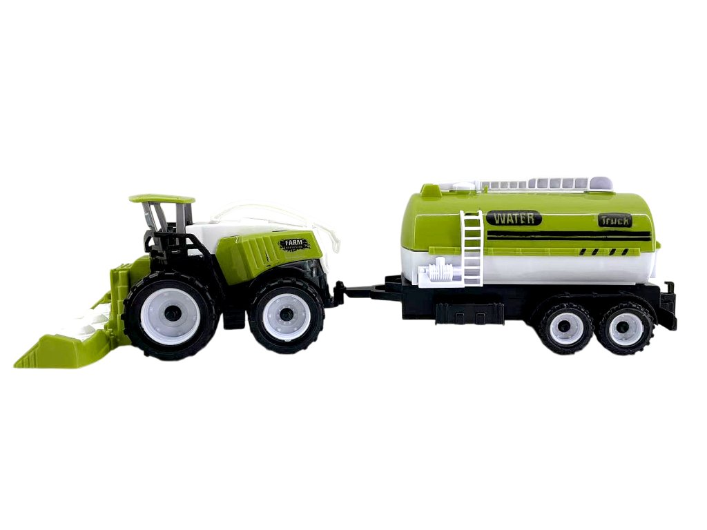 A három mezőgazdasági arató-cséplőgép utánfutókkal valósághű készlete minden kis mezőgazdasági gép rajongónak örömet szerez. Minden arató-cséplőgép saját vágóasztallal és hozzá csatlakoztatható utánfutóval rendelkezik – víztartály, fa utánfutó és rakodó utánfutó. A részletes kidolgozásnak és a tartós műanyag kivitelnek köszönhetően a gyerekek órákon át élvezhetik a gazdálkodást.