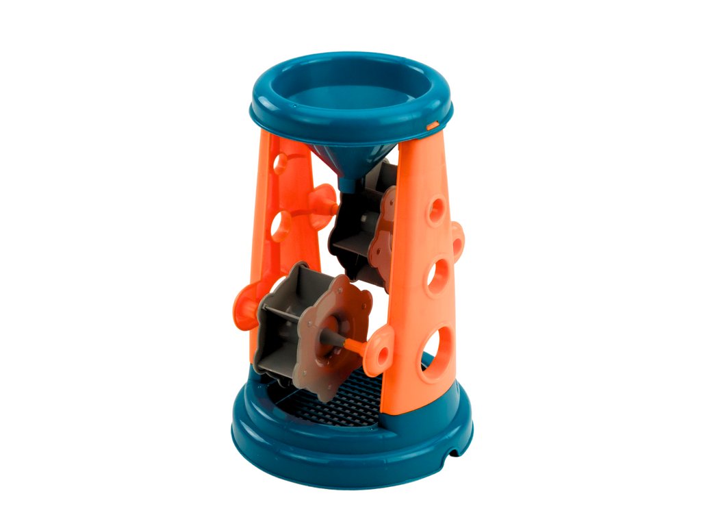 A színes homokgarnitúra darálóval komplett felszerelés egy kis strandrajongó vagy a homokon való játék szerelmesei számára. A szett fő eleme egy darálós vödör, melynek egyik oldalán praktikus szita található a homok szitálásához, másik oldalán tölcsér a homok szerkezetekbe történő pontos adagolásához. Ez a praktikus megoldás hatékonyabbá és kreatívabbá teszi a játékot.