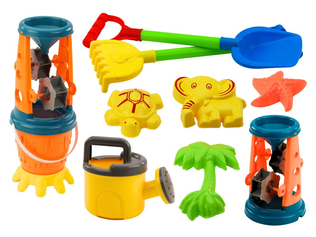 Homokkészlet Grinder Shovel Rake Kettle Formák Vödör 10 db