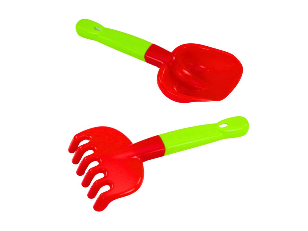 Homokos játékkészlet, lapát, gereblye, formák, 6 db