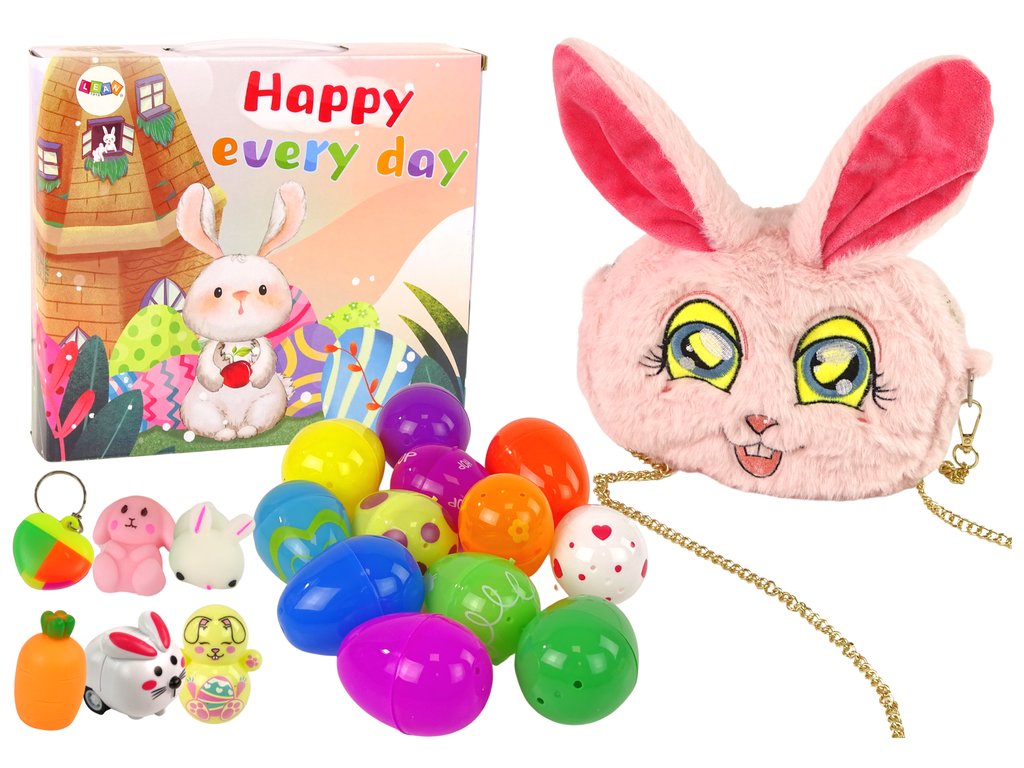 És ez még nem minden! A készlet tartalmaz egy húsvéti nyuszi formájú táskát is, amellyel gyermeke kiegészítheti öltözékét, vagy búvóhelyként használhatja az összes kiegészítőt és csajos kozmetikumokat.