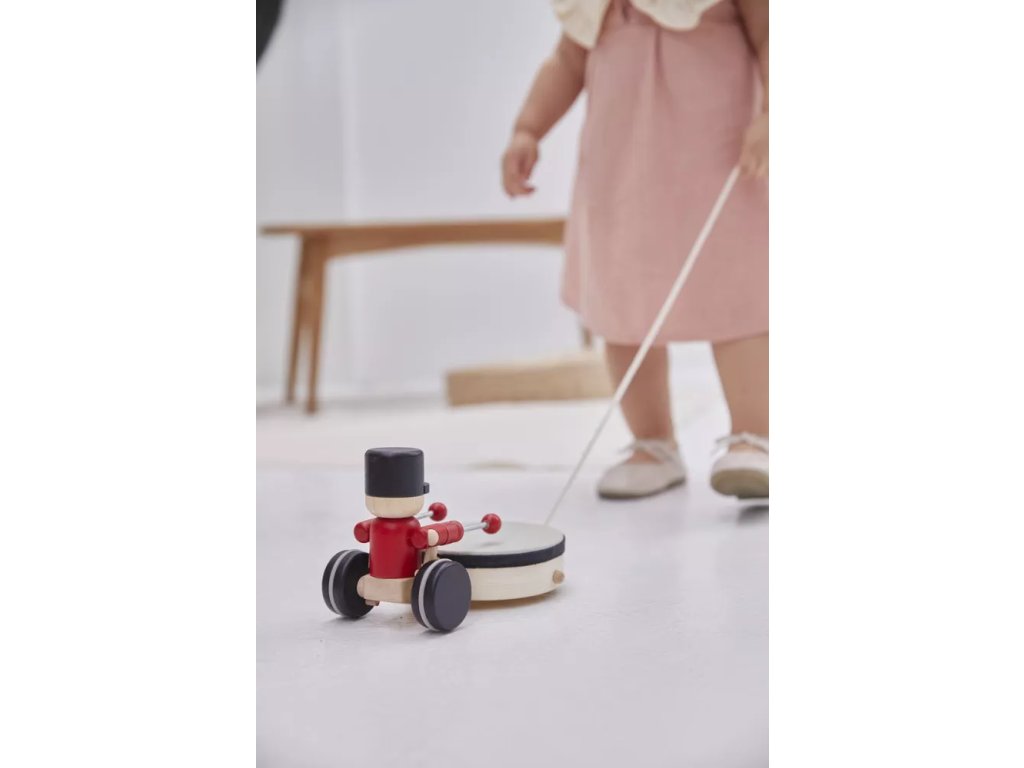 Húzás közben a dobos egy ütővel üti a dobot, és egyedi zenei kíséretet hoz létre. A játék kisgyermekek számára készült, és sétára és a környezet felfedezésére ösztönzi őket.