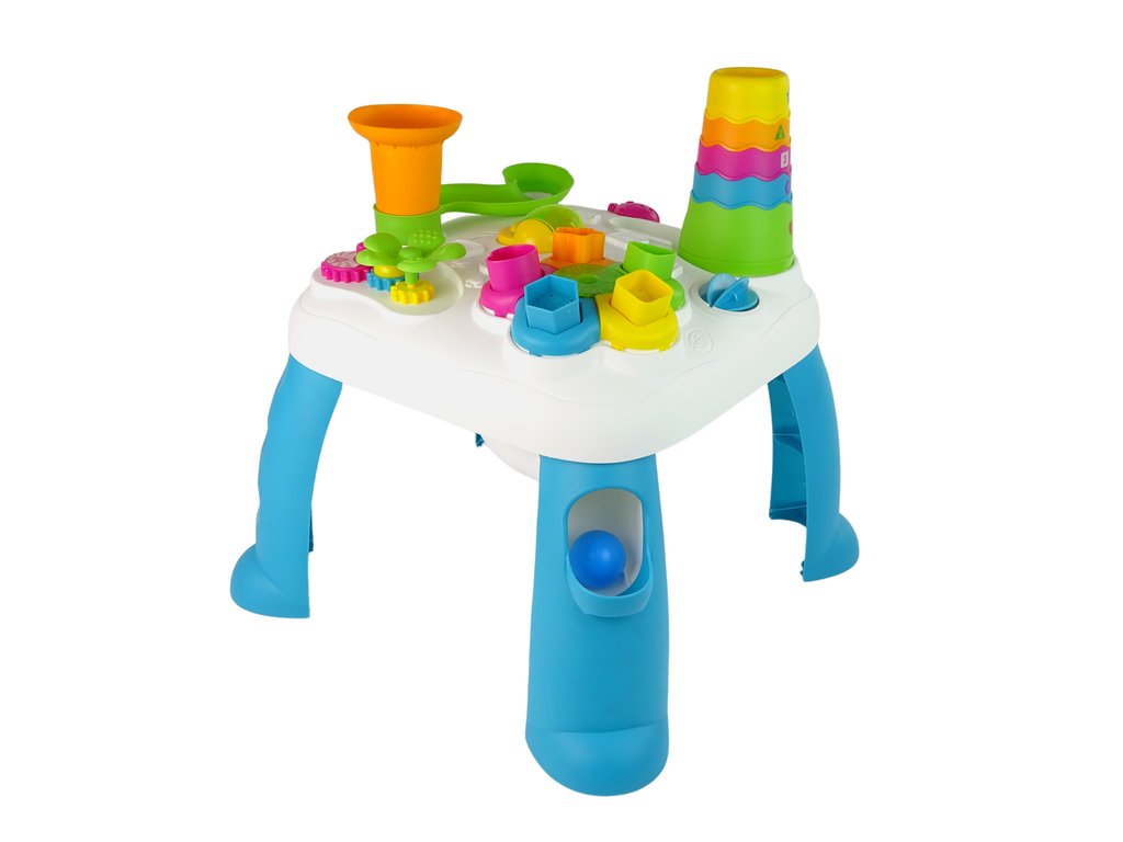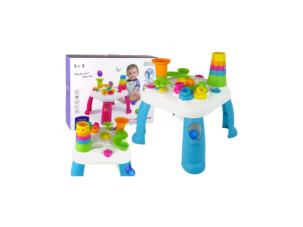 Az asztal lábai eltávolíthatók, és csak a panellel lehet játszani. A játék fejleszti a gyerekek fantáziáját, motorikus készségeit és edzi a szem-kéz koordinációt.
