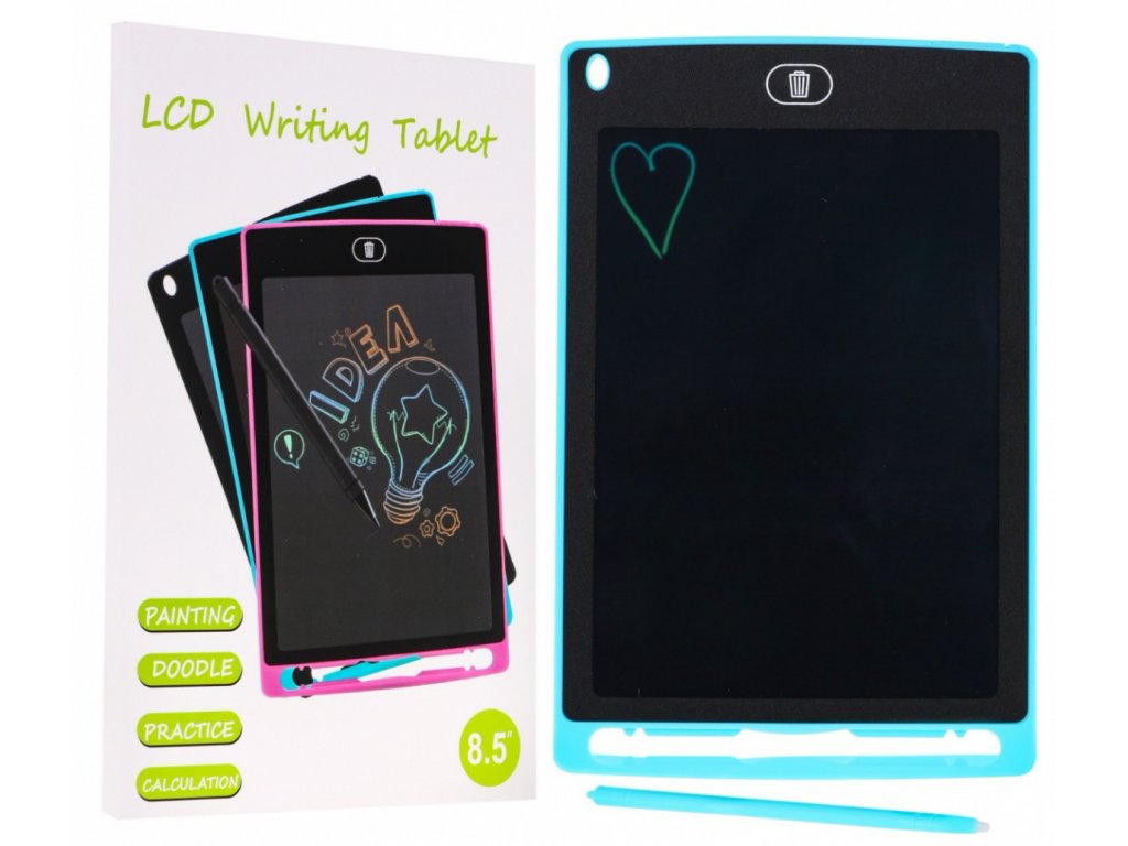 Az interaktív tablet könnyű és vékony, a kijelző átlója 8,5". Bárhová magaddal viheted. A táblagép alján tolltartó található. A ceruzán van egy klip és egy zsinór, ami a tabletre rögzíthető A felső elülső részen található egy gomb, amellyel egy kattintással törölheti a táblagépen készített alkotást.