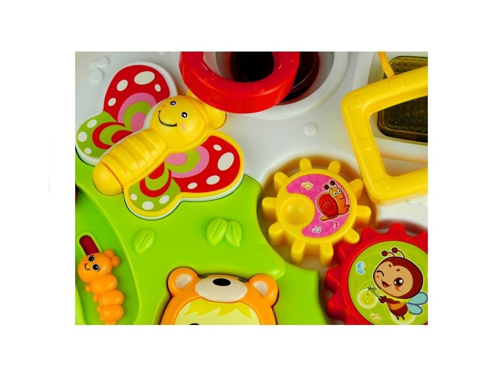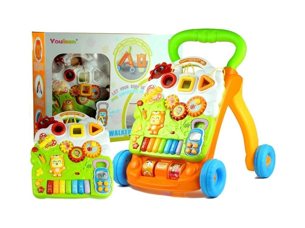 A bemutatott, oktatópanellel kombinált sétáló nemcsak a járás elsajátítását könnyíti meg, hanem támogatja a gyermek nyelvi, érzékszervi és mozgásfejlődését, formákra, számokra és betűkre tanítja.