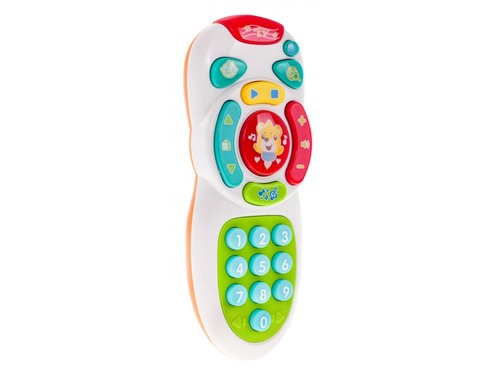 Interaktív multifunkciós kontroller hang- és fényeffektusokkal 18 hónapos kortól gyermekek számára. A játék a legjobb minőségű műanyagból készült, és nincsenek éles szélei. Nagy gombjai vannak a hang- és fényeffektusok aktiválásához, így kényelmesen kezelhető a kisgyermekek kezével. Mindegyik gomb alatt szórakoztató dallamok és hangok találhatók, van egy gomb a játék be- és kikapcsolására, valamint egy hangerőszabályzó. A távirányító közepén egy nagy mackógomb található, amely zene lejátszása közben villog. A távirányító tetején található gomb, amely szerint a TV is háttérvilágítással rendelkezik.