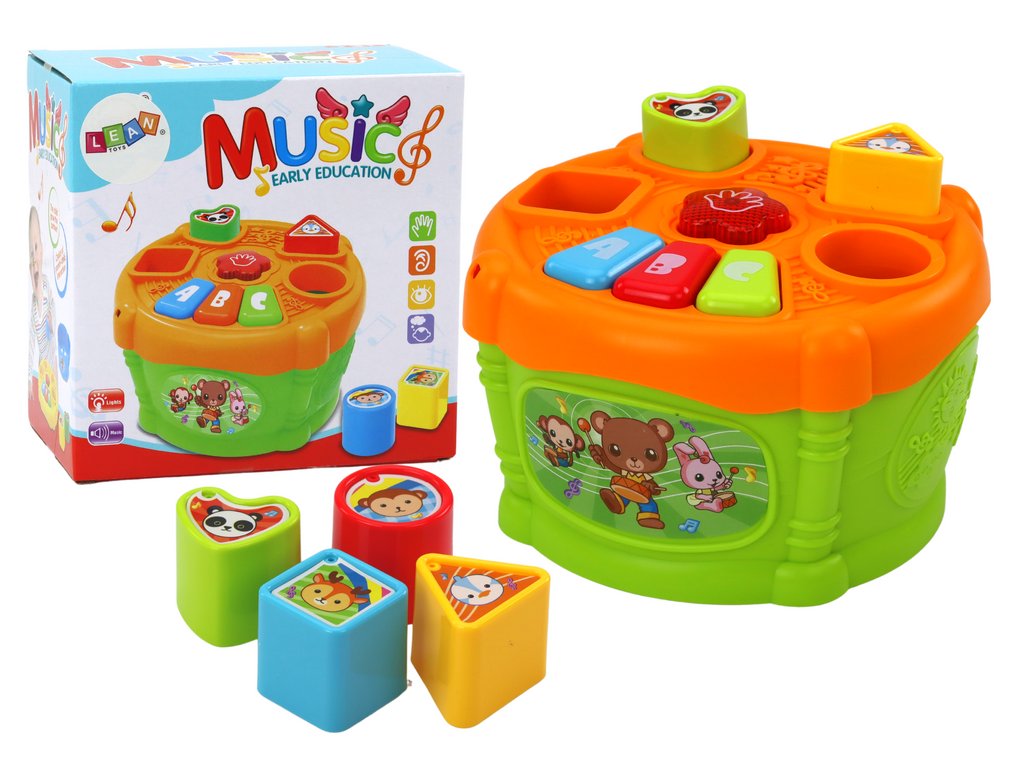De ez még nem minden! Dobtermünk interaktív szórakozást is kínál. Ha a blokkokat a megfelelő lyukakon keresztül helyezi be, és megnyomja a fogantyú gombját a játék közepén, a gyermek élvezheti a taps hangját, ami tovább motiválja őt a felfedezésre és az interakcióra.