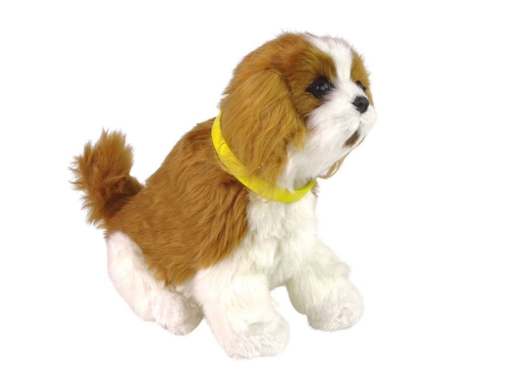 Interaktív kutyafajta Cavalier King Charles spániel a tökéletes játék gyermeke számára. Minden alkalommal aktiválódik, amikor megérinti, ugatni kezd, ha megsimogatják, mozgatja a fejét és a farkát.