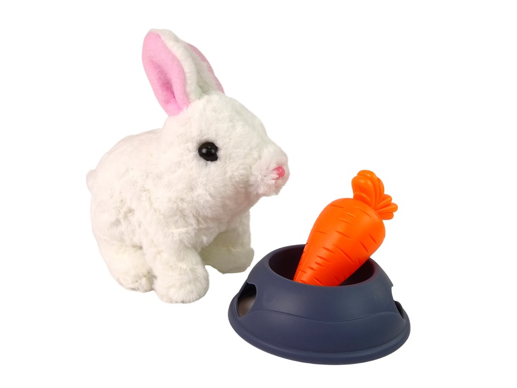 Interaktív plüss fehér nyúl tál sárgarépával
