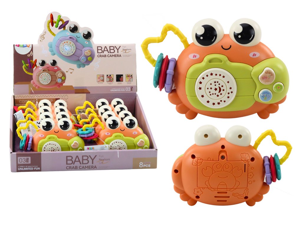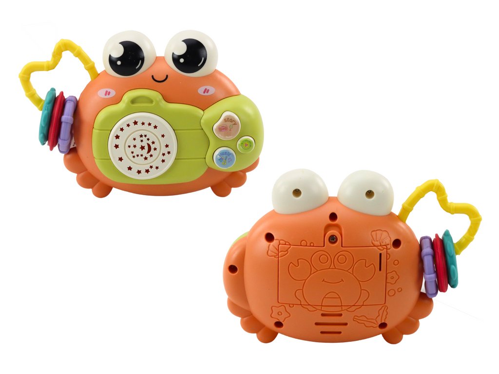 Fedezze fel az interaktív rákcsörgő játékot egy projektorral, amely szórakoztató és fejleszti a gyermek érzékszerveit. Ez a narancssárga rák nemcsak kellemes hangokat ad ki a beépített csörgőknek köszönhetően, hanem színes csillagokat is vetít, hogy minden játékot felélénkítsen. Biztonságos, nem mérgező anyagokból készült, tökéletes a kis kezekre, fejleszti a motoros készségeket és a hallásérzékelést. Egy nagyszerű játék, amely garantálja a szórakozást és a tanulást egyben.