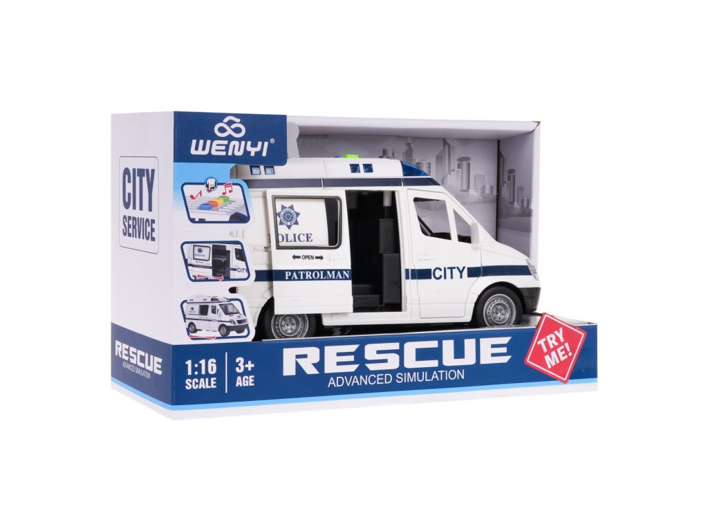 Ez az interaktív rendőrautó hang- és fényeffektusokkal, mozgó alkatrészekkel, 1:16 méretarányban készült, 3 éves kortól alkalmas gyermekek számára. A rendőrautó gumiabroncsokkal rendelkezik, amelyek jól tartják a talajt, és hátsókerék-hajtású. Az utas- és vezetőoldali ajtók, valamint a jármű hátsó része nyitható és zárható.