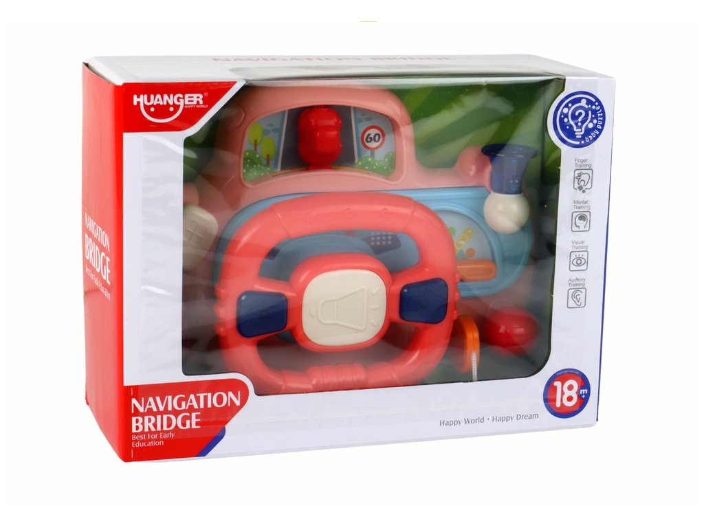 Ez a rózsaszín interaktív kormánykerék egy játék, amely nemcsak szórakozást, hanem interaktív tanulást, valamint motoros és érzékszervi készségek fejlesztését is kínálja a gyerekeknek.