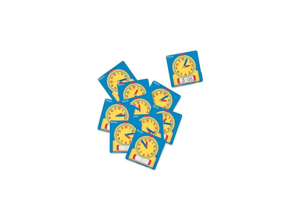 - A csomag tíz laminált, négyzet alakú táblát tartalmaz mozgatható mutatókkal.