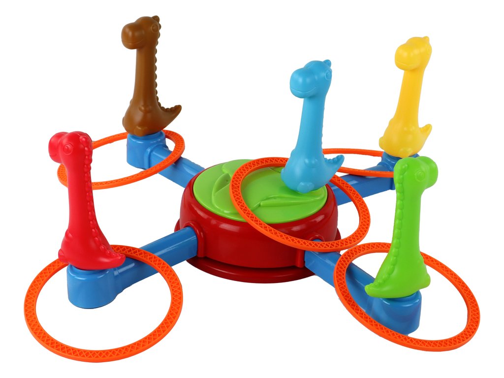 A csomag öt gyűrűt tartalmaz. A gyermek feladata, hogy a körhintán forgó kiválasztott dinoszauruszokon minden gyűrű közepét próbálja meg eltalálni. Ez precizitást és koordinációs készségeket igényel.